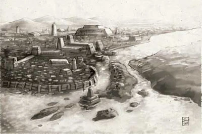 Alle Viertel sind von hohen Mauern umschlossen und mittels gut bewachter Tore miteinander verbunden. Handel findet über die Straße nach Maerlar statt, oder über die See. Gegen das Meer schützt eine niedrige Seemauer vor hohen Flutwellen etwa drei Meilen von der Küste entfernt.[1]